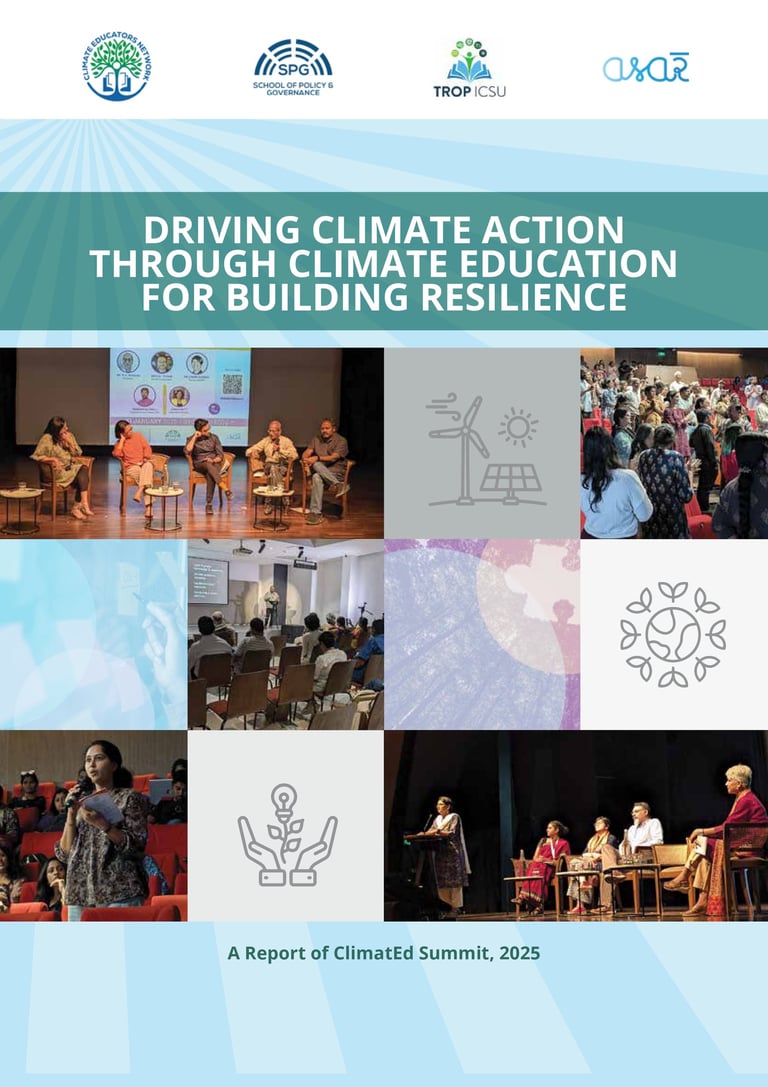 Represented the convergence of inclusive and sustainable voices at the ClimatEd Summit 2025 — "Envisioning New Pathways for Education" — hosted by the Climate Educators Network, in partnership with the School of Policy and Governance, Asar, TROP ICSU, and SPJIMR Wise Tech, on 30th and 31st January 2025 at Bangalore International Centre (BIC), Bengaluru (India). The ClimatEd Summit brought together varied stakeholders — government bodies, NGOs, educators, academicians, researchers, advocates, and practitioners to advance climate education. The platform enabled the sharing of diverse perspectives, lived experiences, success stories and best practices that helped in gaining fresh outlooks and actionable insights, fostering collaboration and innovative solutions.